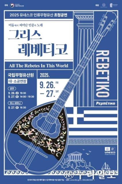 (누리일보) 국가유산청 국립무형유산원은 오는 9월 26일과 27일 총 3회에 걸쳐 국립무형유산원(전북 전주시) 얼쑤마루 대공연장에서 유네스코 인류무형유산 초청공연 '그리스 레베티코'를 개최한다.