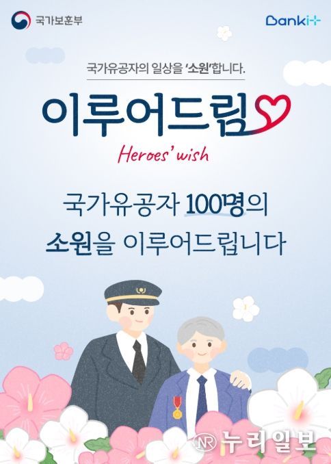 (누리일보) 국가보훈부는 은행연합회와 함께 국가유공자의 특별한 사연이 담긴 소원을 들어주는 ‘이루어드림’ 프로젝트를 진행, 지난해에 이어 올해에도 100명의 지원 대상자를 선정하고 지원금을 지급한다고 밝혔다.