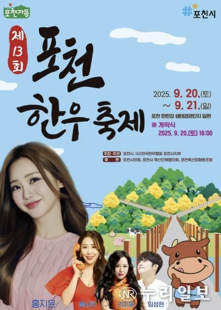(누리일보) 포천시는 오는 9월 20일부터 21일까지 이틀간 포천 한탄강 생태경관단지에서 ‘제13회 포천한우축제’를 개최한다.