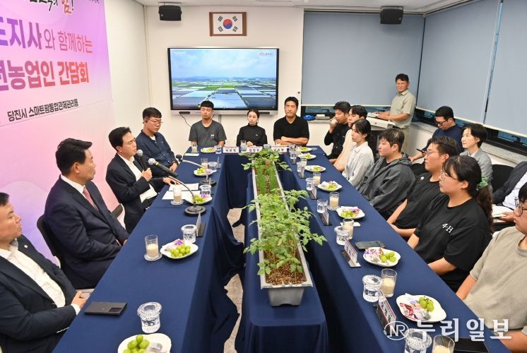 이날 김 지사가 찾은 당진 스마트팜 사관학교는 16명의 청년농이 과채류와 엽채류, 완숙토마토, 딸기, 방울토마토, 잎상추, 쪽파 등을 재배하고 있다.