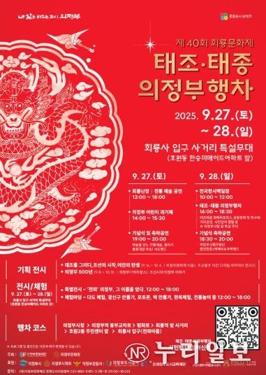 의정부문화재단 박희성 대표는 “제40회 회룡문화제는 시민과 함께 만들어가는 전통문화 축제”라며, “2003년 이후 처음 선보이는 태조·태종 의정부행차를 통해 지역 정체성을 강화하고, 문화도시 조성사업의 지역 특화 콘텐츠로 한층 발전시켜 나가겠다”고 밝혔다.