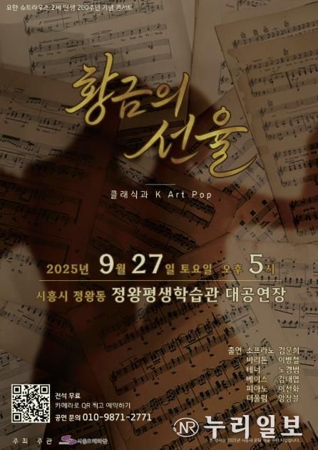 (누리일보) 시흥오페라단은 오는 9월 27일 오후 5시 시흥 정왕평생학습관 대공연장에서 ‘황금의 선율 : 클래식과 K-Art Pop의 만남’ 콘서트를 개최한다.