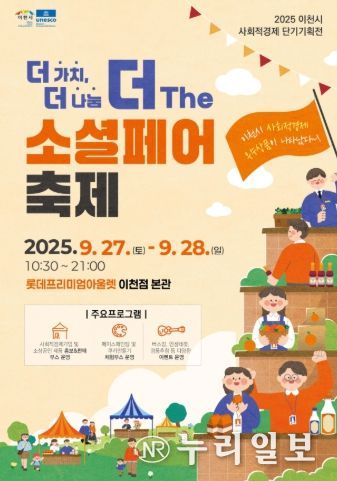 (누리일보) 이천시는 오는 9월 27일부터 9월 28일까지 이틀간, 롯데프리미엄아울렛 이천점 본관 1층 광장에서 사회적경제 단기기획전 ‘더 가치, 더 나눔, 더(The) 소셜페어 축제’를 개최한다.