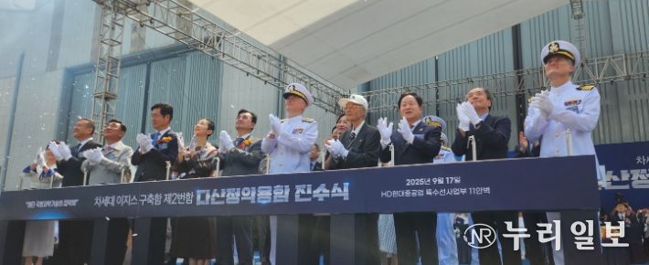 (누리일보) 주광덕 남양주시장은 17일 울산 HD현대중공업 조선소에서 열린 차세대 이지스 구축함 ‘다산정약용함’ 진수식에 참석했다. ‘다산정약용함’은 정조대왕급(KDX-Ⅲ Batch-Ⅱ) 2번함으로, 첨단 전투체계를 갖춘 대형 해군 구축함이다.