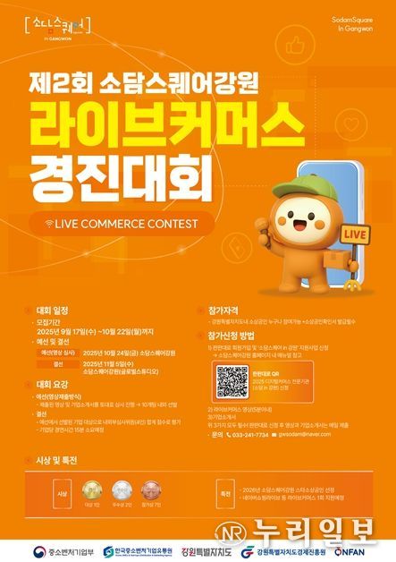 (누리일보) 강원특별자치도는 도내 소상공인의 온라인 마케팅 역량 강화를 위해 소상공인이 직접 참여하는 '제2회 라이브커머스 경진대회'를 개최한다고 밝혔다.