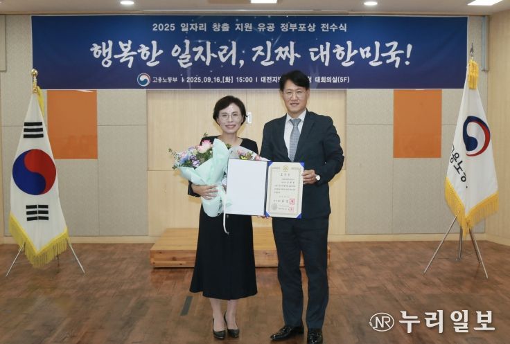 (누리일보) (재)충청남도평생교육인재육성진흥원 소속 충남청년센터는 강현정 센터장이 9월 16일 대전지방고용노동청에서 열린 ‘2025년도 일자리창출 지원 유공 정부포상’에서 국무총리 표창을 수상했다고 밝혔다.
