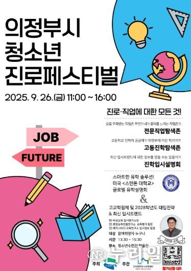 (누리일보) 의정부도시교육재단은 청소년 진로탐색을 지원하고 미래역량 강화를 돕기 위해 2025년 9월 26일 의정부시청소년수련관에서 '2025년 의정부시청소년진로페스티벌'을 개최한다.