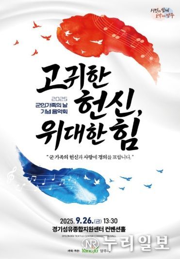 (누리일보) 양주시는 오는 9월 26일 오후 1시 30분, 경기섬유종합지원센터 컨벤션홀에서 ‘2025 군인가족의 날 기념행사’를 연다.