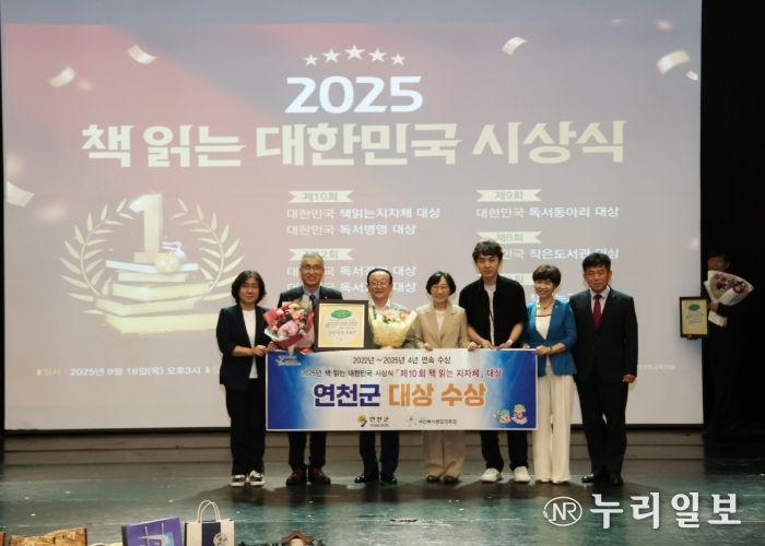 (누리일보) 연천군은 지난 18일 명지대학교 인문캠퍼스에서 열린 ‘2025 책 읽는 대한민국 시상식’에서 전국 지자체 부문 4년 연속 대상을 수상했다고 밝혔다.