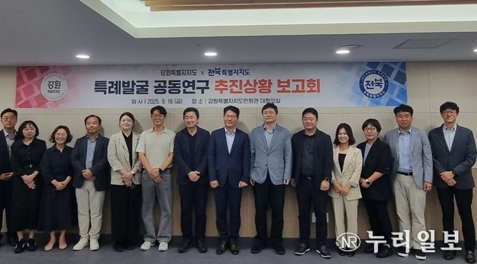 (누리일보) 강원특별자치도는 9월 19일 오전 10시 강원특별자치도민회관 대회의실에서 전북특별자치도와 함께 '특례 발굴 공동연구 추진상황 보고회'를 개최했다고 밝혔다.