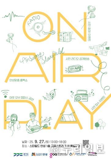 (누리일보) 안성미디어센터가 시민 라디오 공개방송 'ON AIR PLAY'를 9월 27일 13시부터 스타필드 안성 1층 고메스트리트 내 특별무대에서 개최한다고 밝혔다.