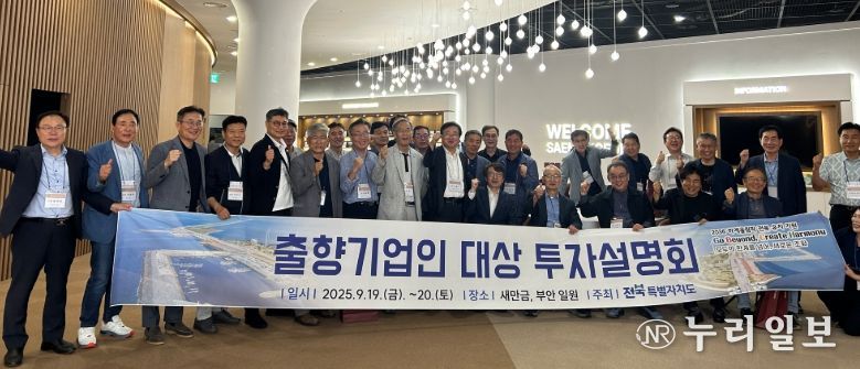 (누리일보) 전북특별자치도가 이달 19일부터 20일까지 새만금과 부안 일원에서 '출향기업인 대상 투자설명회'를 개최했다.