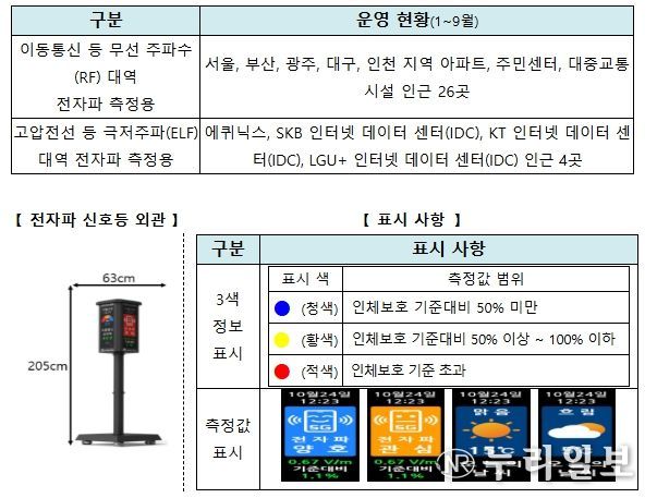 한편, 과기정통부는 전자파에 대한 국민의 불안을 완화하기 위해 금년부터 서울·경기 지역의 데이터센터에 전자파 신호등을 설치·운영해 왔으며, 전자파 불안 감소 효과가 높은 전자파 신호등을 데이터센터, 주요 생활시설 등 전자파 갈등 발생 지역에 설치를 확대할 계획이다.