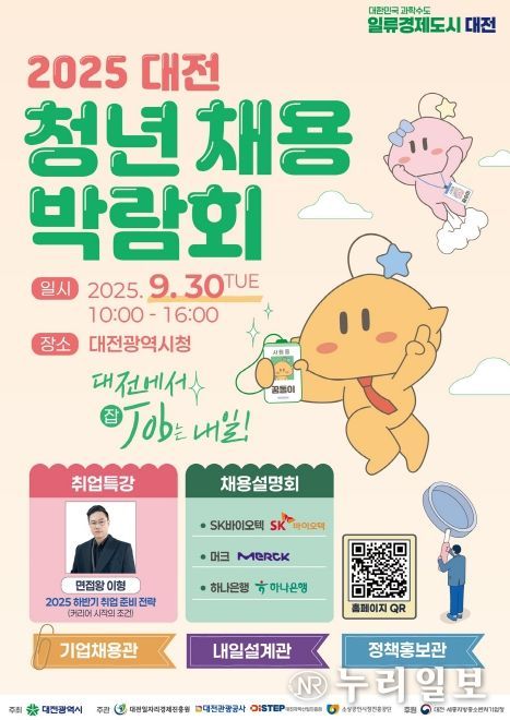 (누리일보) 대전시는 오는 9월 30일 오전 10시부터 오후 4시까지 시청 2~3층에서 ‘2025 대전 청년채용박람회’를 개최한다고 22일 밝혔다.