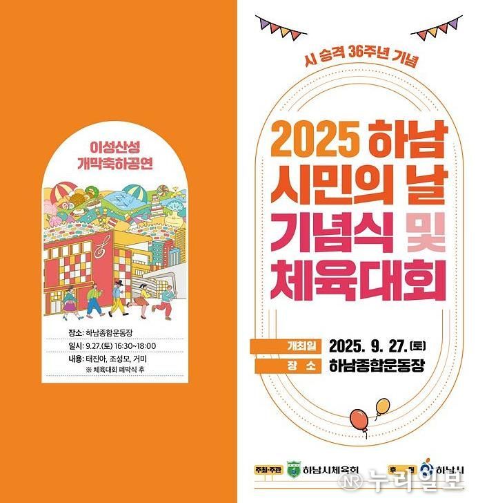 (누리일보) 하남시는 오는 9월 27일 하남종합운동장에서 ‘제36주년 하남시민의 날’을 맞아 기념식과 체육대회를 비롯한 다채로운 행사를 개최한다.