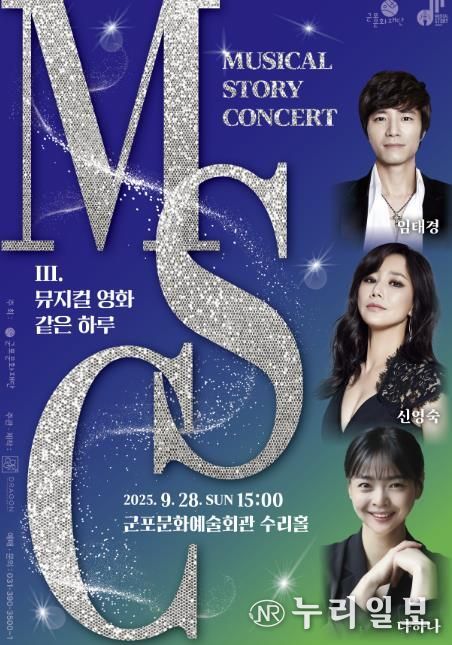 (누리일보) (재)군포문화재단은 오는 9월 28일 오후 3시 군포문화예술회관 수리홀에서 기획공연 “뮤지컬 스토리 콘서트 Ⅲ. 뮤지컬 영화 같은 하루”를 선보인다.