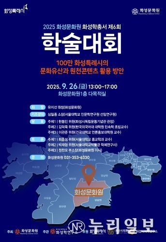 (누리일보) 화성특례시는 오는 9월 26일 오후 1시부터 5시까지 화성문화원 1층 다목적실에서 ‘화성학총서 제6회 학술대회’가 열린다고 밝혔다. 이번 학술대회는 화성문화원이 주최하고, 화성학연구소가 주관하며, 화성특례시와 화성특례시의회, 화성지역학연구소가 후원한다.