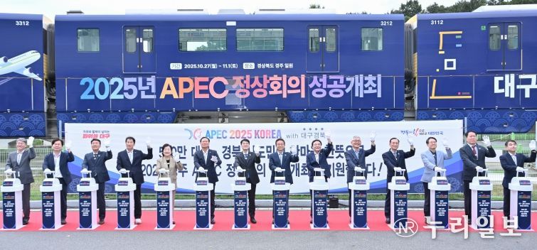 (누리일보) 대구광역시와 경상북도는 공동협력의 일환으로 9월 22일 오후 3시, 대구 도시철도 3호선 칠곡차량기지에서 2025년 APEC 정상회의 성공 개최를 기원하는 ‘대구경북 APEC 열차’ 출발 행사를 개최했다.