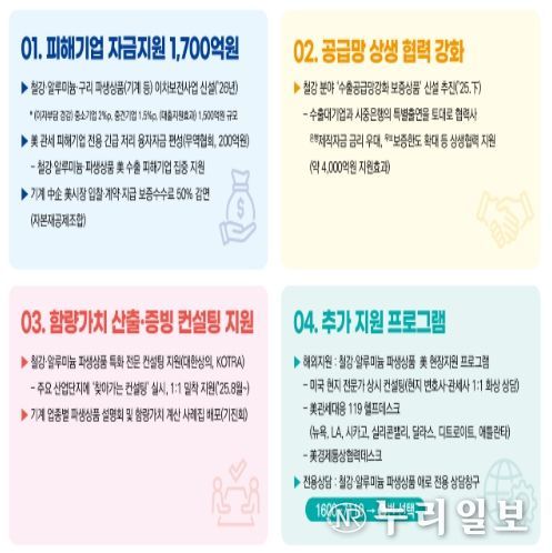 (누리일보) 산업통상자원부 김정관 장관은 9.22(월) KOTRA에서 철강·알루미늄 파생상품 기업 지원 간담회를 주재하고 ‘관세대응 119 (1600-7119)’ 현장을 방문했다. 이번 현장방문은 미 관세조치 애로가 큰 철강·알루미늄 파생상품 기업현장의 목소리를 경청하고 ‘관세대응 119’ 지원체계를 점검하기 위해 마련됐다.