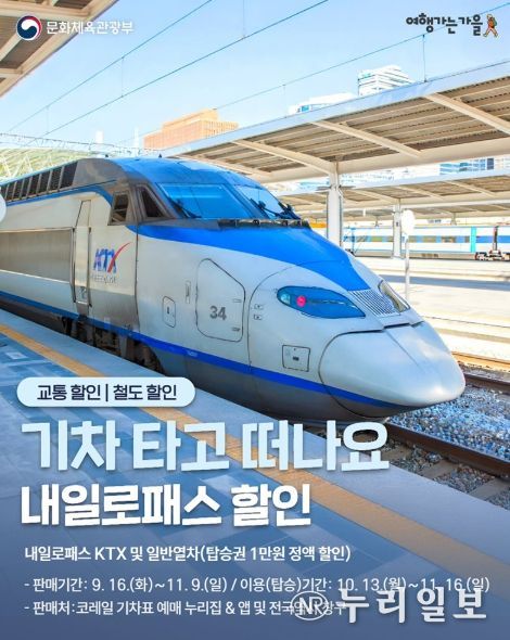 - 판매기간: 9.16.(화)~11.9.(일) / 이용(탑승)기간: 10.13.(월)~11.16.(일)