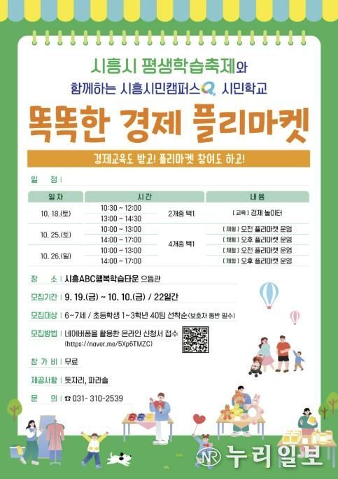 (누리일보) 시흥시는 제17회 시흥시평생학습축제(10월 24일~26일)와 연계해 어린이들의 경제활동 이해 증진과 가족 간 소통 강화를 위한 ‘똑똑한 경제 플리마켓’을 오는 10월 18일부터 시흥ABC행복학습타운 으뜸관에서 추진한다.