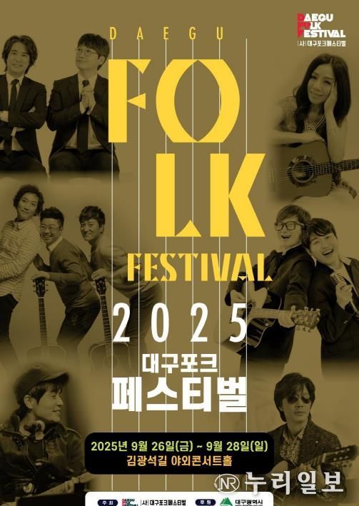 (누리일보) 대구광역시와 (사)대구포크페스티벌은 오는 9월 26일부터 9월 28일까지 3일간, 김광석길 야외콘서트홀 일원에서 ‘2025 대구포크페스티벌’을 개최한다.