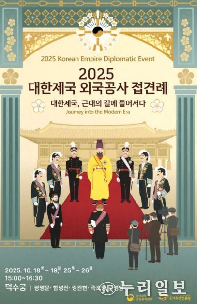 (누리일보) 국가유산청 궁능유적본부는 국가유산진흥원과 함께 10월 18일~19일, 25일~26일 오후 3시 덕수궁(서울 중구)에서 고종 황제가 외국공사를 접견하는 의례와 연회를 재현한 공연 '2025년 대한제국 외국공사 접견례'를 개최한다.