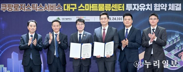 (누리일보) 대구광역시는 9월 24일 오후 4시 30분, 시청 동인청사 2층 상황실에서 국내 택배부문 1위 기업인 ‘쿠팡로지스틱스서비스(유)’(대표 홍용준, 이하 ‘쿠팡로지스틱스서비스’)와 수성알파시티 내 첨단 스마트물류센터 구축을 위한 투자유치 협약을 체결했다.