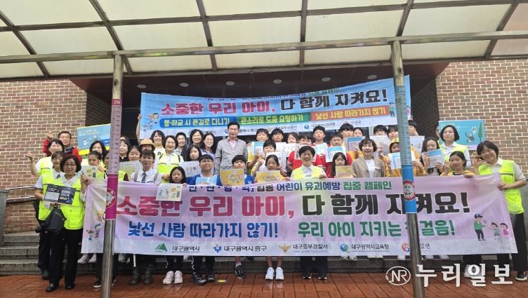 (누리일보) 대구광역시는 9월 25일, 중구 경대사대부초 인근에서 민·관·경·학 합동으로 ‘2025년 어린이 유괴 예방 집중 캠페인’을 펼쳤다.