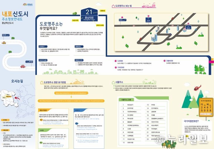 (누리일보) 충남도는 내포신도시의 신설 도로와 도시개발사업 변경 사항을 반영한 최신 도로명주소 안내도를 제작·배포했다고 28일 밝혔다.