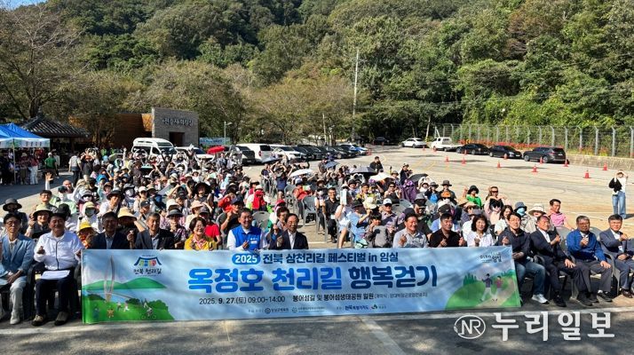 (누리일보) 옥정호의 절경을 배경으로 탐방객들과 함께 걷는 ‘2025 전북 삼천리길 페스티벌 Festival in 임실 – 옥정호 천리길 행복 걷기’ 행사가 27일 임실군 붕어섬 생태공원에서 열렸다.