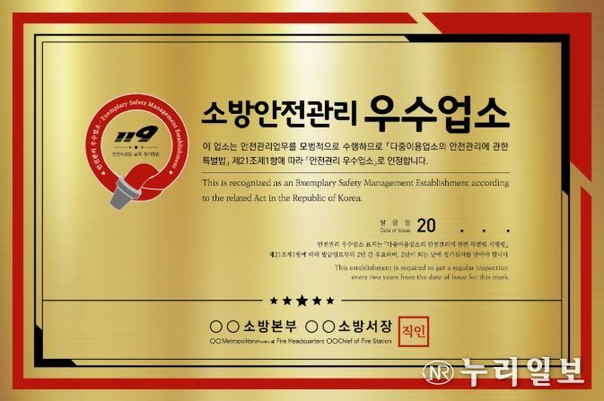 (누리일보) 경상남도 소방본부는 소방안전관리 실태가 우수한 4개소를 ‘2025년도 다중이용업소 안전관리 우수업소’ 신규 인정 예정 대상으로 공고했다.