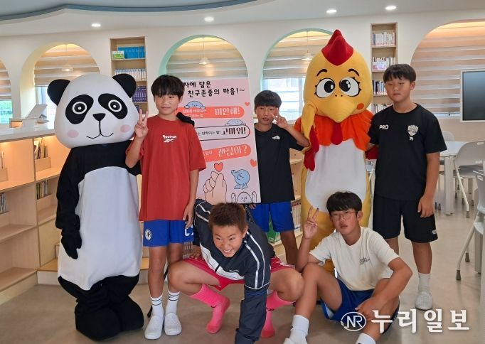 또한 학생회 주도로 도서관에서 ▲친구사랑 문구가 담긴 책갈피와 그립톡 만들기 ▲다짐 문구 쓰기와 동물 캐릭터 친구들과의 인증 사진 촬영 ▲학교폭력 주제 도서 읽고 감상 나누기 등의 활동을 진행했다.