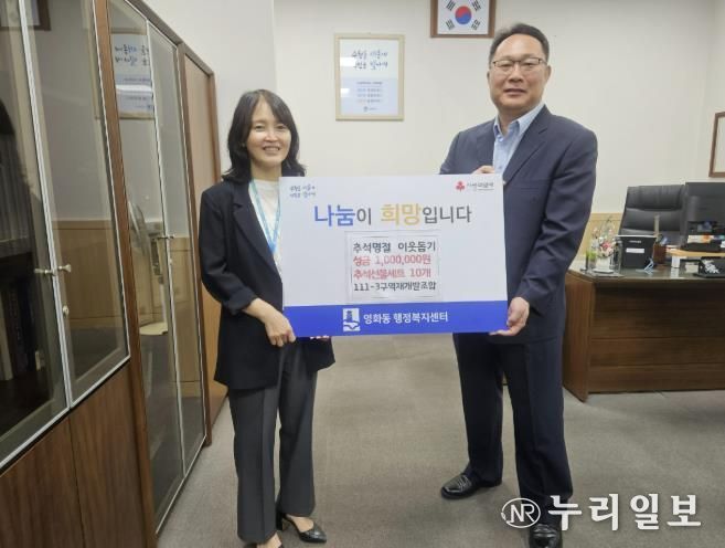 (누리일보) 수원시 장안구 영화동 111-3구역 주택재개발정비사업조합은 지난 26일, 추석 명절을 맞아 지역 내 저소득층을 지원하기 위해 130만 원 상당의 후원금을 영화동 행정복지센터에 전달했다.