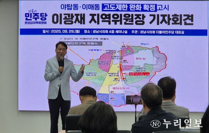 (누리일보) 더불어민주당 분당갑 이광재 지역위원장은 29일 기자회견을 통해 “주민들의 오랜 숙원인 서울공항 주변 고도제한 완화가 결실을 맺게 된 것은 주민들의 인내와 연대, 그리고 함께해 온 노력 덕분”이라고 밝혔다.