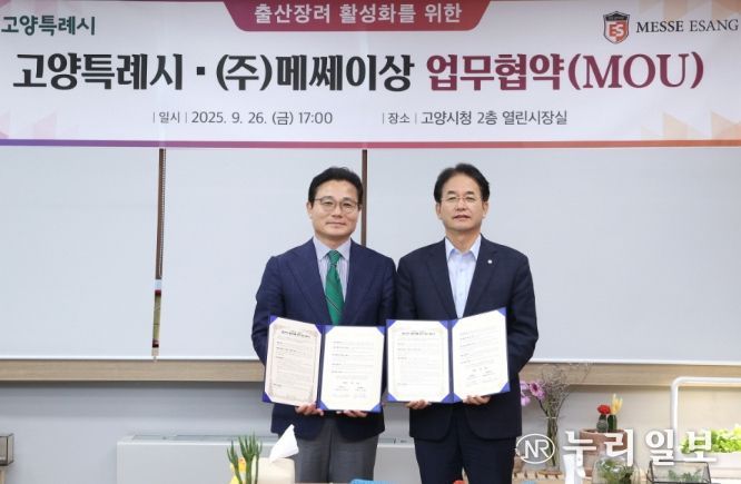 (누리일보) 고양특례시는 국내 대표 전시 주최사 ㈜메쎄이상(대표 조원표)이 지자체와는 최초로 출산 장려 활성화 및 건강한 양육 문화 조성을 위해 손을 잡았다고 밝혔다.