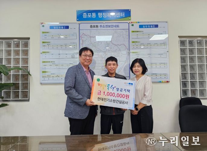 (누리일보) 이천시 증포동은 9월 29일, 추석 명절을 앞두고 이천시에 있는 현대전기소방건설공사가 ‘행복한 동행’ 성금 100만 원을 기탁했다고 밝혔다.