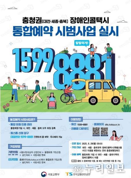(누리일보) 국토교통부와 한국교통안전공단은 중증 보행 장애인이 특별교통수단(장애인콜택시) 을 더욱 편리하게 이용할 수있도록 특별교통수단 통합예약시스템을 개발하여 9월 29일부터 대전 ‧세종 충북에서 시범운영에 들어간다.