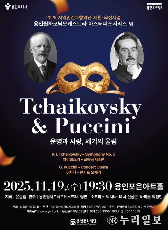 (누리일보) 용인문화재단은 오는 11월 19일 오후 7시 30분, 용인포은아트홀에서 용인필하모닉오케스트라(지휘 윤승업) ‘Tchaikovsky · Puccini '운명과 사랑, 세기의 울림'’ 공연을 개최한다고 밝혔다.