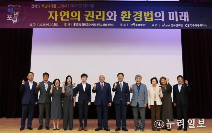 전북연구원이 30일 전북특별자치도청 대회의실에서 개최한 전북 백년포럼 제39강 초청연사로 강연에 나선 홍준형 명예교수(서울대 행정대학원)는 ‘자연의 권리와 환경법의 미래’라는 주제 강연을 통해 이같이 지적했다.