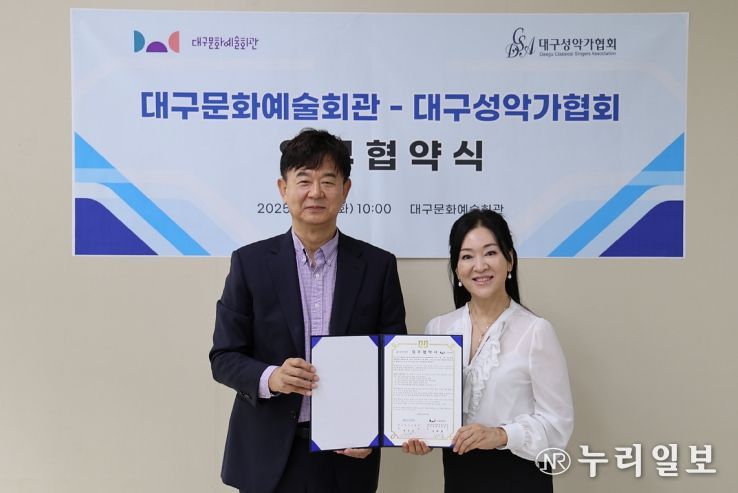 (누리일보) (재)대구문화예술진흥원 대구문화예술회관은 대구성악가협회(회장 류진교)와 업무협약(MOU)을 체결하고, 지역 성악가의 성장 지원과 안정적인 활동 기반 마련을 위해 협력하기로 했다.