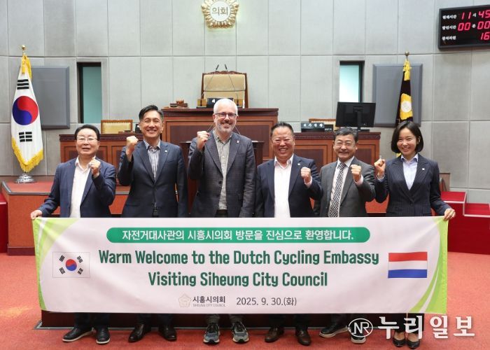 (누리일보) 시흥시의회 도시환경위원회가 9월 30일 의회청사 소담뜰에서 네덜란드 자전거대사관(Dutch Cycling Embassy, DCE)을 초청해 간담회를 열고, 시흥시 자전거 정책 발전 방향과 친환경 교통 시스템 구축 방안에 대해 논의했다.