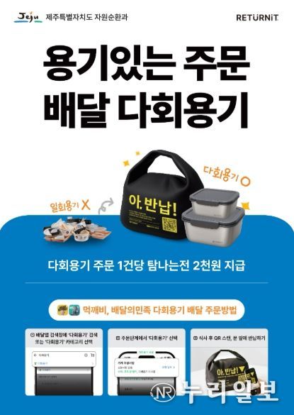 (누리일보) 제주특별자치도는 지난 8월 13일 시행된 ‘용기있는 주문’ 배달앱 다회용기 주문 서비스의 누적 주문이 2,000건을 돌파했다고 밝혔다.