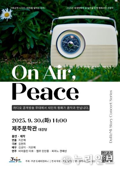 (누리일보) 라디오 공개방송 형식으로 꾸며지는 음악극 ‘스토리 콘서트 'On Air, Peace'’가 30일 오후 2시 제주문학관 대강당에서 막을 올린다.