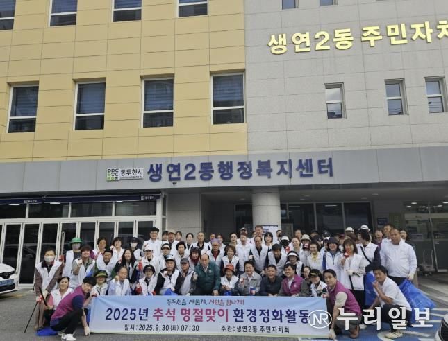 (누리일보) 동두천시 생연2동 행정복지센터는 9월 30일 추석을 앞두고 사회단체 회원과 동 직원 등 80여 명이 참여한 가운데 관내 환경정화 활동을 실시했다.