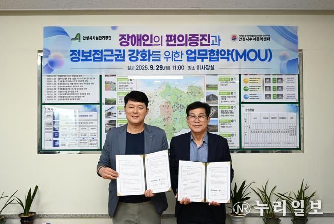 (누리일보) 안성시시설관리공단은 지난 29일 오전11시 공단 2층 이사장실에서 안성시수어통역센터와 안성시 공영주차장을 이용하는 장애인의 편의증진과 정보접근권 보장을 위한 업무협약을 체결했다.
