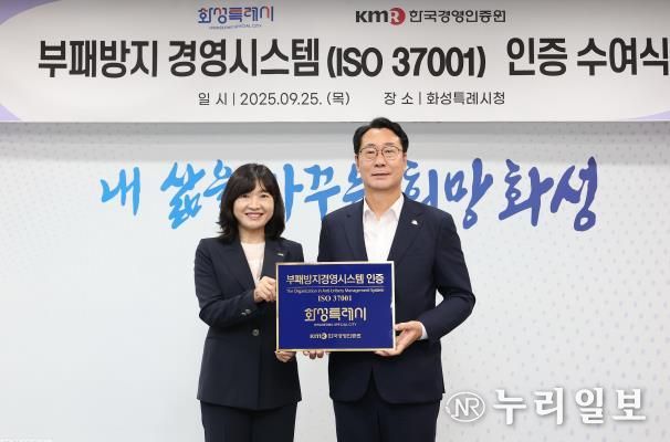 (누리일보) 화성특례시가 국제표준화기구(ISO)에서 제정한 부패방지경영시스템 (ISO37001) 인증을 획득했다.