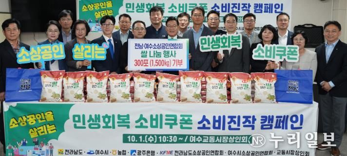 (누리일보) 전라남도와 전남도 소상공인연합회는 1일 여수 교동시장에서 농협과 광주은행으로부터 기부받은 쌀(5kg) 300포를 활용해 지역민과 함께 나누는 ‘민생회복 소비쿠폰 소비 진작 캠페인’을 개최했다고 밝혔다.