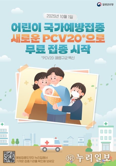 (누리일보) 질병관리청은 10월 1일부터 폐렴구균 국가예방접종에 신규 백신인 20가 단백결합백신(PCV20)을 도입해 접종을 시작한다.