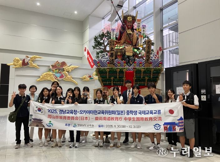 (누리일보) 경상남도교육청은 9월 30일부터 10월 3일까지 4일간 도내 중학생 국제교육교류단 16명이 일본 오카야마현을 방문했다.